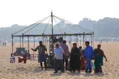 Last stop way down south Final destination in South India: Chennai (Madras). The last beach-fun atmosphere, last tropical heat. We are heading north From Rameshwaram we headed to Trichy. That was supposed to be our last stop before boarding a plane from Chennai to Varanasi. But we arrived to Trichy at 22:00, all the hotels were full or expensive and Irene passionately hated the bus station area where we arrived and where most of the hotels were, and she hated it so much that instead of staying in Trichy we finally just hopped on to a night bus to Chennai (formerly knowns as Madras) to spend the last day in the south there. There is practically NOTHING to see in Chennai, when it comes to sightseeing. But the town, as all towns in Tamil Nadu, has very authentic atmosphere. Unlike Mumbai it seemed to have soul to me. By far the most interesting part was the local beach - truly local. All the crappy and kitschy Indian souvenirs, Indians bathing in full dress (in jeans, shirts and everything), sweets and fried snacks, photos with horses – everything that an Indian tourist requires from her beach visit. Good bye South India, off to the north we go! |