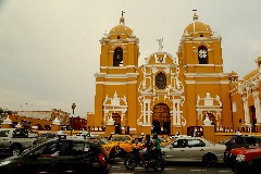 Pizzaro's hometown 2.0 Few pictures (not too much text) from the big city around the corner - Trujillo. Trujillo in Spanish’s province of Extremadura was a birthplace of Francisco Pizzaro, the crazy conquistador who subdued Incan Empire and looted for Spanish Crown golden riches beyond anyone’s imagination. And right here, 10km from Huanchaco and practically at the edge of then-standing ancient site Chan Chan which he looted, he established a colony named in honor of his birthplace – the Peruvian Trujillo. As such it’s one of the oldest post-Colombian cities in South America. Trujillo is nice. It’s not bombastic but it’s nice. It’s Peru’s 3rd largest city with some 700 000 citizens and it played important role in Peruvian history (it was here that Peru declared its independence from Spain). There’s a lot of old colonial buildings still standing, painted in brave bright colors, each of them looking like a small fortress with its massive streets facing walls. Its historic center is very neat and sympathetic and at the same time it is sufficiently modern: it has bunch of supermarkets and an extremely flashy shopping mall. Trujillo is not too far away from Huanchaco, some 20-30 minutes by bus, but we go there very rarely. Somehow, beyond the initial draw of touristic interest, there is not too much that would make us go there. Sure there is a lot of bars, but it’s just too inconvenient to go so “far” during the night and having to pay a taxi on the way back. Yes we have been there, that’s for sure, but we go there only seldom. Probably the buses are to blame. There are thousands of buses and minivans passing between Huanchaco and Trujillo literally every minute, but despite the short distance the ride is plain horror. Peruvians in general drive like idiots and these “professional” drivers are worst of all. They accelerate to 100kmh in 10 seconds and then they brake back to 0kmh (to onboard another passenger) in 5 seconds. It’s like a nightmare rollercoaster ride, with at least 50 stops on the way as there are no designated bus stops and people get on and off every 20 seconds. True anarchy in motion. It makes the bus ride to Trujillo so annoying that you really don’t feel like going there at all. Plus Trujillo itself is one big honking traffic jam, a real warzone for pedestrians. I thought I was used to traffic chaos from Asia, but this is worse. The drivers are much more arrogant, they drive 5 time faster than anyone in Asia and the whole Peruvian traffic chaos just misses the fluency of the Asian traffic chaos. |