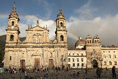 Colombia! Irene's only day in Colombia, for me the first of my 10 days in this unexpected destination Colombia! Another country from a countries I’m probably not going to see list. We landed at a neat modern airport, where a drug checking police dog spotted something in Irene’s bag so the police tagged the bag and we were ready for deep and painful check, but finally nobody cared about the tag and nobody checked us, so we just took it off as were leaving the airport. It must have been a piece of ham that Irene was smuggling into Colombia what attracted the dog. Or was it the cocaine from the Andes? :-) Candelaria is Bogota’s historic center and it’s a nice neighborhood, full of colorful little old colonial houses, cobbled streets running up and down the hilly terrain. My hostel was in one of these lovely old houses. Bogota is out of tropics, as it sits at elevation 2600m above the sea, which guarantees relatively mild climate. We didn’t really have there too much time as Irene had to catch her plane in the afternoon, but we managed to reasonably crisscross the historic part with colonial houses and mansions, statues of Simon Bolivar, and managed to have a Colombian coffee in Colombia. Check. We headed to the airport a bit late, and by the time we arrived it was maybe 1 and half hour before the departure, which would be perfectly OK, if the queue for Irene’s check-in wasn’t one hour long and we didn’t spend 15 minutes investigating about plastic wrapping of the bags. Soon Irene’s position in the queue became hopeless so she went to talk to one of the attendants, who asked her where was flying to, Irene said “Madrid” and the attendant told her to stand in a priority queue. 15 minutes later, completely being ignored by all the attendants while being the only person waiting in a priority queue we became really nervous so Irene went to the attendants again, only to find out, that the check-in for her flight is already closed and she cannot take the flight. The point was, that there was a direct flight to Madrid which was leaving 30 minutes later, but Irene’s flight was actually to Barcelona where she had a stop-over. The attendants thought she was taking the direct flight to Madrid. But her flight was the one to Barcelona. And that flight closed its check-in just 5 minutes before Irene made it to the desk and there was no way how to get to her to that flight anymore. A real departure drama began, which involved Irene crying, attendants refusing to help, supervisor’s intervention and finally intervention of supervisor’s supervisor, who decided to change Irene’s flight and gave her a ticket to that flight directly to Madrid so that she could make it home. Happy ending! Funnily enough, at the very last moment the departure of that flight was 2 hours delayed :-) Next day I had still some time in Bogota so I went to a mind blowing Bogota Museum of Gold, which houses beautiful collection of gold statues and ornaments of pre-Colombian American civilizations. The gold which the Spanish conquistadores didn’t manage to find, loot, melt and take away to Spain, in the name of their god and the king. To think that the treasures seen there are just tiny and humble leftovers of the glorious riches that once had existed… |