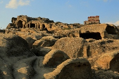 Unexpected "visitor" and Georgian explorations How I received a "parcel" and first trips with that "parcel" in Georgia: holy Mtskheta, Stalin's hometown Gori, sacred water of Borjomi and 2 cave cities. Friday, 15:00. I'm at work lost in my Excel sheets, when someone calls me that there is a parcel waiting for me at the first floor and they need my signature. I knew that was a bullshit and some hoax, because no one (who could send me a parcel) knew I was there and anyway what kind of parcel could it be? But nothing could prepare me for getting out of the elevator and finding that my parcel was... Irene. She “was” in Nepal, pretending to be in Pokhara and she should arrive here in 1 or 2 weeks, and instead of Nepal suddenly she was here in Tbilisi! I was speechless for next 3 hours. What a crazy woman! I love her so!!! So after spending some 10 days in Nepal she secretly bought a ticket to Tbilisi and the girl who sat next to her in the airplane offered her to give her a ride to my office so she could surprise me. What I couldn’t understand at all and what totally blocked my brain until I found it out was how the hell did she know where the office was? Only after 30 minutes or so I realized that she must have asked Jirka whom she had met in Australia. As she told me the truth was even more complicated. Because the place is really difficult to find even if you know the address (there are 5 buildings with same number on that street), Jirka asked Brano who had been in Tbilisi few days ago to take a picture of the building and send it to her. It was a complete conspiration. Suddenly I also understood why just 2 days ago Brano had bought a bottle of wine and gave it to me, saying “This is for Irene. Enjoy”. And so my lonely days are gone. We share a little apartment in Tbilisi, rehearsing a household life – me going to work and Irene assuming role of housewife :-) As you can imagine she is totally “thrilled” about it :-) Luckily, the Georgian public holidays season has arrived (they have 5 days public holidays in just 3 weeks) and it started with Independence Day (one of their 2 Independence Days) on Wednesday. So on Wednesday we made a trip to nearby holy city of Mtskheta (try to pronounce it!) – where in 337 AD for the first time a Georgian king converted to Christianity and thus established Georgia as the second oldest Christian country in the world (after Armenia). There was some “oiling ceremony” going on in Mtskheta, which proved as good photo opportunity. And on the way there, for the first time in my life I got drunk in a taxi. The driver who was taking us there from Tbilisi (taxis are incredibly cheap in Georgia) out of nothing asked me in Russian if I liked Georgian wine and when I said yes he suddenly pulled over, as we were approaching Mtskheta, opened the boot of the car and brought a 2L plastic bottle full of homemade wine. And then he forced us to drink couple of glasses for no reason, again and again, and finally I got drunk. Interesting Georgian experience. During the weekend be hired a car and did a weekend road trip, for Irene's birthday, southwest from Tbilisi. First stop was Stalin's hometown Gori, ruined by recent Russian invasion, where we visited museum dedicated to The Man. While Irene surely couldn’t have ever expected to celebrate her 31st birthday in Georgia, she could have expected even less to celebrate it by visiting Stalin’s museum :-) By the way, Georgia must be the only country which has George Bush Street (in Tbilisi) and Stalin Avenue (in Gori). Nice combo! Next was ancient cave/rock city Uplistsikhe, which is a whole city carved into a rock. A very nice place and also the surrounding area. You know that kind of place where cows roam free and old folks of villages sit in front of their houses watching the world go by, not minding that nothing really ever happens. From there we ventured on to Borjomi town, home of Borjomi mineral springs. Oh, Borjomi! Mine, Jirka’s and Lenin’s favorite mineral water. It tastes like real mineral water, like Slovak Fatra USED TO taste, before they castrated it, with that distinct taste of sulphur and iron, and it’s exactly why we (me, Jirka and Lenin) love it. It’s also a real gem for hangover. When Irene arrived I gave her a bottle saying it was “special water”, but on purpose I didn’t warn her that it would taste “strange”. She sipped a bit and in one second she spit it all out almost vomiting and then she asked me “Why the fuck does it taste like fish?”. Well, seems like Irene is not gonna join our Borjomi fanclub. I pity the fool! After some problems with finding accommodation late in the evening and with my zero Russian language skills, we finally managed to find a room and overnighted in Borjomi and had a modest birthday party composed of dinner and Georgian wine in local restaurant. Next morning, I was overexcited by opportunity to have Borjomi straight from the “tap”, meaning a pipe coming from ground where you could fill up your plastic bottle or container. The water was warm (some 30’C, which added to weirdness of drinking it) and the taste was truly unfiltered. I loved it, Irene almost vomited when she gave it a second try. I got like 10 liters of the Holy Water and moved on towards Vardzia another cave city, this time carved into a cliff face. Another great place - check the photos. And from there we headed back towards Tbilisi. As we were passing villages on a high plateau on Georgian-Armenian-Turkish border, I thanked god I was born in Bratislava and not there. I had hardly seen anything more depressive. Half abandoned villages with horrible infrastructure, ruined leftovers of Soviet industry, destroyed train stations, and all of it on that high plateau which meant that there was practically no vegetation there, just stones. I doubt they can grow at least potatoes there. I really wander, what do they live from? It looked half-apocalyptic and I’m completely sin