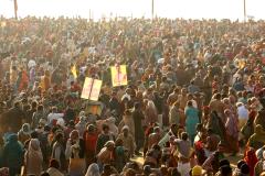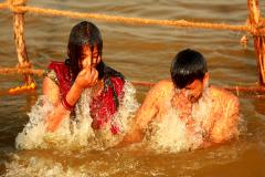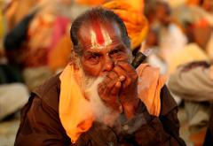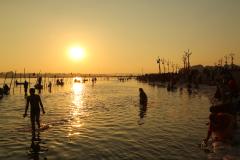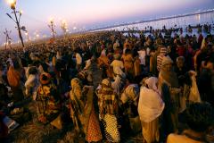 Maha Kumbh Mela, take 1 The largest gathering of people on the planet - Maha Kumbh Mela (Great Jar Fair) in Allahabad Back in the ancient times, gods (devas) started to lose their mighty powers. Vishnu, one of three main Hindu gods, advised them to churn the Ocean of Milk, to obtain Amrita, nectar of immortality. As the gods couldn’t do it one their own, they teamed up with devils (asuras), and by fixing king of nagas (giant snake-like creatures, which typically decorate many Hindu and Buddhist temples) onto Mount Meru, which was used for the churning, they alternatively pulled his head (the demons) and tail (the gods) and together they indeed churned the ocean and gained a full jar of nectar of immortality. But the gods didn’t feel like sharing the immortality and divine powers with the devils, and so they quickly stole the jar and tried to escape. The devils chased them and during the battle for the jar, four drops of nectar spilled onto the earth: in Haridwar, Ujjain, Nasik and Allahabad. This story, known as Churning the Ocean of Milk is one of the most popular Hindu myths and references to it can be found practically in every temple. Kumbh Mela – Fair of Jar – is held each 3 years in one of the cities (so each 12 years in each city), but it’s in Allahabad, each 12 years, when Jupiter, the Sun and the Moon align to the rightest position, when it comes the time of Maha Kumbh Mela – Great Fair of Jar – the biggest festival in the world, greatest religious pilgrimage and greatest gathering of people on the planet. Hindu pilgrims come to the confluence of three holiest Indian rivers – Ganga, Yamuna and Saraswati (but don’t look for Saraswati on a map, this river is mythological, it’s the underground river of immortality, that is believed to join Ganga and Yamuna in Allahabad) – to bath in the holy waters, cleanse from their sins and ultimately ensure moksha, liberation from cycle of reincarnations. To reach Nirvana, after they die, to put it short. Taking one bath, even if the opportunity comes only each 12 years, is surely easier way how to book moksha than by leading spotless spiritual life, so the popularity of the festival is understandable and draws millions and millions of pilgrims. 2013 is year of Maha Kumbh Mela and it’s estimated that around 110 million Hindus will come to Allahabad to take the bath. The festival lasts 1,5 month, but the best day for bathing is 10-Feb-2013, when it’s expected that 40-70 million people will immerse into waters of Ganga/Yamuna in Allahabad. I found out that this is the year of Maha Kumbh Mela( in the ashram in Rishikesh and decided to take part in it. I knew that just seeing such incredible masses and witnessing the mind blowing scope of the event must be fantastic experience, although obviously, it would be one hell of bone-crushing crowd and I couldn’t imagine, where were all those people going to stay or even how were they going get there. Allahabad has around 1,5 million citizens, and on 10-Feb-2013, there is supposed to be 40-70 million of people around, all racing towards the river for their share of moksha. I knew that the real thing would be to go there just with a sleeping bag and a mat, but I didn’t have the courage to do this, given the fact that just my photo equipment is worth thousands of EURs and I couldn’t imagine how the event would look like and where would such unimaginable amount of people squeeze in. So I booked a room with one agency, to have a place to lay down without being worried for my camera and stuff and without having to sleeping on (or more probably under) a mountain of Indians. I arrived on 8-Feb-2013 and I was surprised how smooth the arrival was. I had no booking for the transport from Lucknow, but I knew that trains were all sold out and would be crowded like hell, so I opted for bus, hoping for better chances to actually make it to Allahabad. I headed to Lucknow’s bus station at 5:30 in the morning, and to my surprise, the bus from Lucknow was a direct bus and it was half empty (I took an air conditioned bus, because it was the first bus in the morning and as it was bit more expensive than the normal bus, Indians largely ignored it) and so I had a really comfortable ride to Allahabad and the bus even arrived on time. The traffic chaos around Allahabad was only yet to come. The price of the accommodation included pick-up from the bus station and so, all in all, I got to the camp pretty straightforward (of course that Allahabad itself was already under traffic chaos, but nothing really horrible). So far, so good. On 8th, in the afternoon, I went to check out, how this place looked like. Well, getting to the right spot (the main bank at the confluence of the rivers) takes 1 – 1,5 hours walking, that is without the crowds. The whole area is GIGANTIC and the area right around the confluence is reserved for ashrams and Indian organizations, so foreigners have to stay relatively far away from the hot spot. I was surprised, that the whole thing seemed to be relatively “well organized”. I mean for India. Any level of organization is already a surprising thing in India. In Europe, we would call it collapse and humanitarian catastrophe, but for Indian standards I would say it was well organized: pontoon bridges across Ganga and Yamuna (which you had to cross to reach the hot spot) were one ways (this alone saved probably thousands of lives and prevented total chaos), there were thousands of policemen and soldiers patrolling the place, the whole area was gigantic as I said, so it could “swallow” really huge crowds and the walking corridors were pretty wide. On the other side, there was virtually no possibility to buy food or water anywhere near the main areas and number of toilets was ridiculously underestimated. There’s maybe 300 hundreds of toilets for few million people. Of course, that this is India, and the usage of the toilet is really not necessary to take shit, but anywa