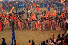 Maha Kumbh Mela, take 2 Hello from the place with the biggest concentration of people, spirituality, infectious diseases and excrements in the world! It’s my birthday today. I am in the middle of crowd of 70 million people, but I spent the whole day alone in my "room" (more like a tin cage), and the only sentence, which I said during the whole day was: "One bottle of water and one toilet paper please" :-) It’s the Universe reminding me that even with 70 million people around, a man is alone if none of them is your friend... Interesting birthday, indeed :-) At noon I realized that I’m really not getting any better and started munching on antibiotics. Traveler’s best friend Ciprofloxacin. Tomorrow I should leave from here, I hope I will be able to do it. But, back to 10-Feb-2012: Now, if you think of my trip as of vacation, imagine this: you wake up at 3:00am, to spend 2 hours walking in freaking cold, fighting for survival in crowd of millions of Indians, while literally wading through swamps of shit (remember, there’s millions of people), to finally arrive somewhere, where you’ll hardly see anything, because of the crowds, and the police will bother you all the time and maybe even hit with sticks. Whole, you continue to fight for survival, 2 hours walking distance from next source of water and food. Well, this is my “vacation” here :-) Suddenly, that quiet day in your office doesn’t sound as a bad deal, does it? Maha Kumbh Mela 2013. You have never seen anything like this! The horizon, in 360 degrees, was covered by people. An endless sea of the people. As far as you can see, everything was covered by tiny dots – the people. Of course that the situation got much more chaotic, and I twice got into a very nasty situation, near one of the pontoon bridges, were people were just stuck as everybody tried to get somewhere else and the crowd just kept on pushing more and more. It was one moment away from a situation when people start to kill others to pursue their own escape and safety. One moment away from that mass panic. I was bit scared there, but luckily for me, I’m still head taller from rest of the Indians and with much stronger body, so I would probably manage to fight my way out somehow, but I really wouldn’t like to start beating people to ensure my own safety. I don’t even remember how I got out of there. But I felt really sorry for those 80 years old grandmas or women with small babies – I don’t know how did THEY survive the crushing of the crowds (and I also don’t understand what kind of idiot brings babies to this event…). When it comes to organization of crowd, Indians absolutely lack any basic rationalism. Instead of spending 5 seconds by thinking how to get somewhere in most reasonable way, they just GO. Always the first entrance, the closest door, people in all directions trying to over-push each other. It’s like this in buses, trains, stations, and of course also here. It never matters that the second entrance or exit is crowd free and that if they would spend 2 minutes to get there, they would save 30 minutes of time waiting in queues or stampede. No, this first entrance is here, we go this way! Aaaaahhhh, some aspects of India I will never understand. Unfortunately, for photographing it was not really such El Dorado as I hoped it would be. First of all, photography was forbidden in most of the places, and there were squadrons of policemen to remind you, second, all the crowds make it really difficult to make a good photo (in other words, I’m not a good enough photographer to shoot in these conditions and really juice them into great photos) and most importantly, all places from which you could take great photos were, without exception, reserved for the press. So, for us, plebs, it was impossible to compete with the journalists, when it comes to taking great photos, we simply didn’t have access to the right spots. As it turned out, the most entertaining part for me was messing around with the police. Like for example this situation: Policemen: No photography permitted here! Me: Am I taking photographs or what? My camera is off. I’m just standing here and watching. Policemen: You cannot stand here. Go back (and pointed out of the bathing area, maybe 50 meters back) I grinned and stepped back 1 meter. Policemen, pissed off by my disrespect for the majesty of his position: GET BACK! I stepped back one more meter. Policemen, totally freaked out by my horrible disrespect for his larger-than-life official power: GET BAAAAAAACK! And as he started to run towards me with his stupid stick, I grinned at him and finally got out of the ‚sacred area‘. I moved 50m to the left, and returned to the same distance from the river as I was before, and so the same story continued with another policemen, and another and another. I felt some punky anarchistic delight inside me, for „fighting the power“ :-) But the best part was during the main event – the march of naga babas. Naga babas are the highlight of Kumbh Mela. They are militant sadhus, who live very ascetic lives in the mountains, they are always naked, only covered with white ash. They come down to Allahabad by thousands to take the bath during Kumbh Mela. And so during this march, in the area restricted for the parade and the press, there was higher than usual level of chaos of people trying to get inside the forbidden area, and when all the policemen around us rushed to help their colleagues in keeping the people behind the barriers, a group of 30 brave guerillas :-), including me, jumped over the barricades and penetrated the forbidden area. Suddenly all the policemen were after us, but I just kept on walking really fast away from them, pretending that I was a journalist. Some poor policemen was blowing his lungs out just behind me, trying to stop me with his whistle (he must have thought that his whistle has some sacred psychokinetic powers to stop me or what), but I completely ignore